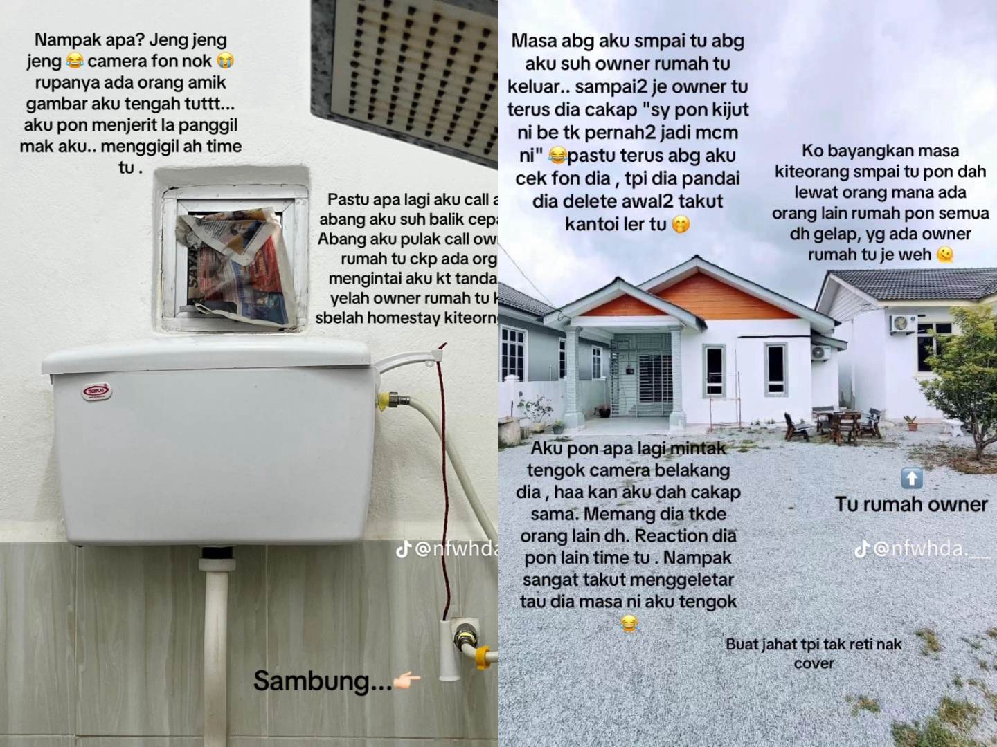 Mangsa turut mendedahkan nama homestay tersebut. Setakat ini, laporan polis belum dibuat. Buat anda yang selalu keluar bercuti, periksa dahulu keadaan homestay mahupun bilik hotel yang telah ditempah.