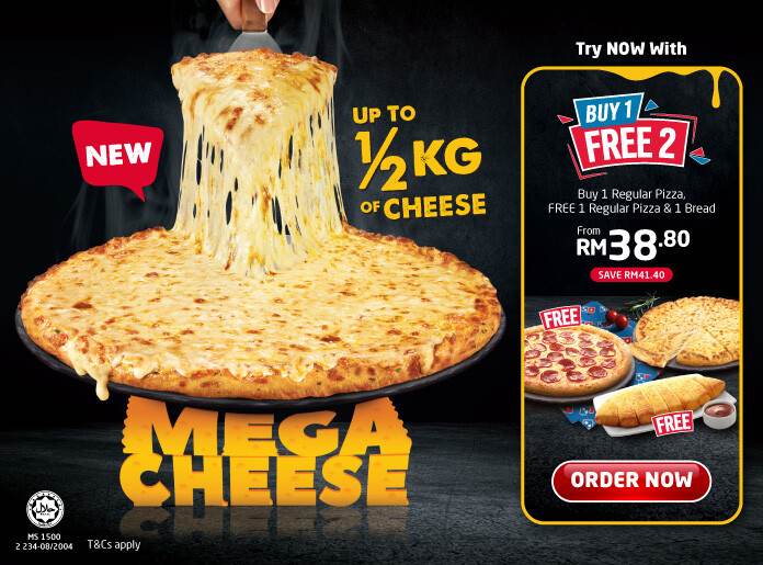 Not just that, the new Domino's Mega Cheese Pizza, topped with up to 1/2 kilogrammes of cheese, will be available at all Domino's Pizza locations nationwide as of today, February 16th, 2022. What a way to celebrate the day of lovers with your special ones by enjoying the cheesy pizza and melting their hearts. For more information, please visit https://www.dominos.com.my/