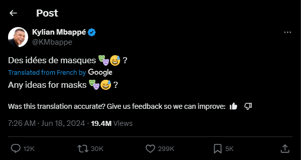 Hasrat Peminat Lihat Mbappe Pakai Topeng 'Ninja Turtle' Di Euro 2024 Mungkin Tercapai