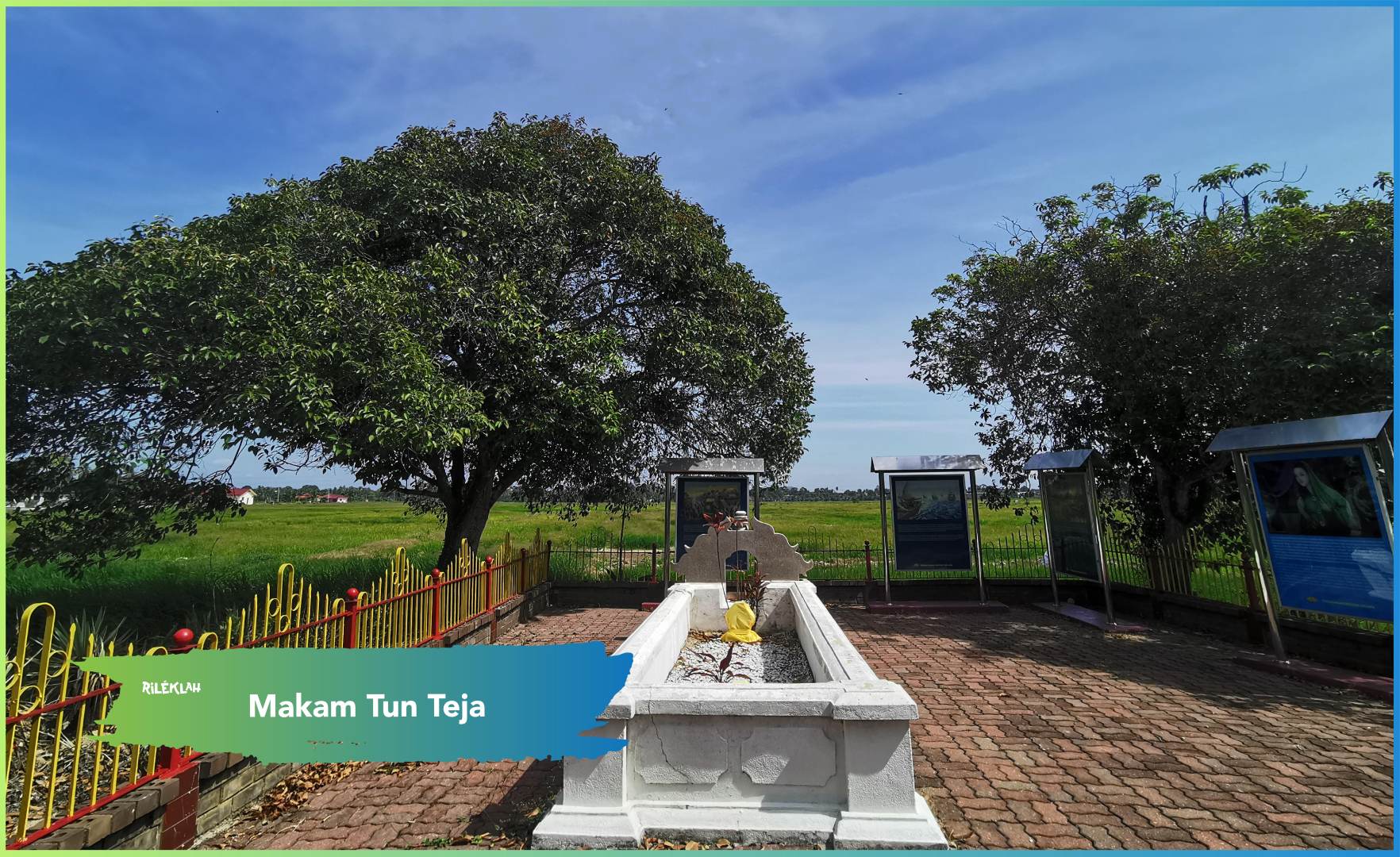 Makam Tun Teja ini adalah salah satu lokasi yang boleh dikunjungi kerana bukan sahaja korang akan dapat mengetahui sejarah wanita yang pernah dilamar oleh Hang Tuah untuk Sultan Mahmud Shah pada Zaman Kesultanan Melayu Melaka, tetapi suasana di makam tersebut juga sangat mendamaikan jiwa kerana korang dapat menikmati kehijauan bendang yang terbentang luas di sekelilingnya.