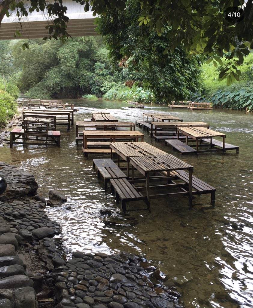 Sambil makan juga anda boleh merasai air sungai yang mengalir sejuk di kaki anda. Jika anda bernasib baik anda boleh melihat sendiri ikan yang melintasi di celahan kaki anda.