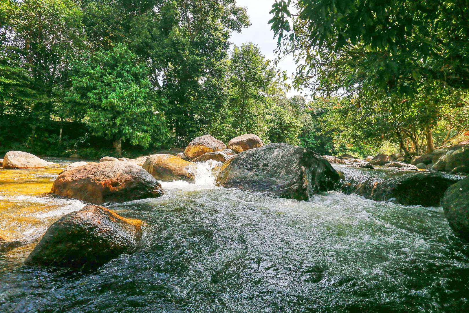 Orang dewasa yang takut ke bahagian sungai yang dalam pun, boleh mandi di sini