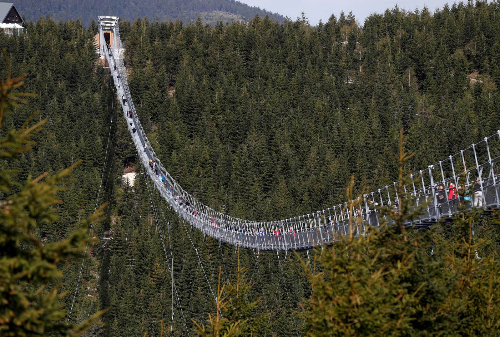 Sebuah jambatan gantung yang dipercayai struktur binaan terpanjang seumpamanya di dunia kini dibuka di sebuah resort pergunungan di Republik Czech.