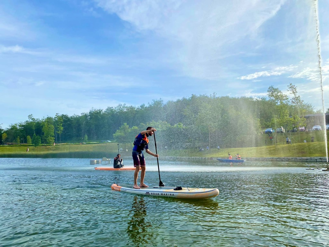 Ini pun salah satu aktiviti yang mencabar dan unik, mendayung sambil berdiri dan menikmati permandangan air terjun yang cukup memukau dan ditemani suasana matahari terbenam di Gamuda Gardens Central Park lake.