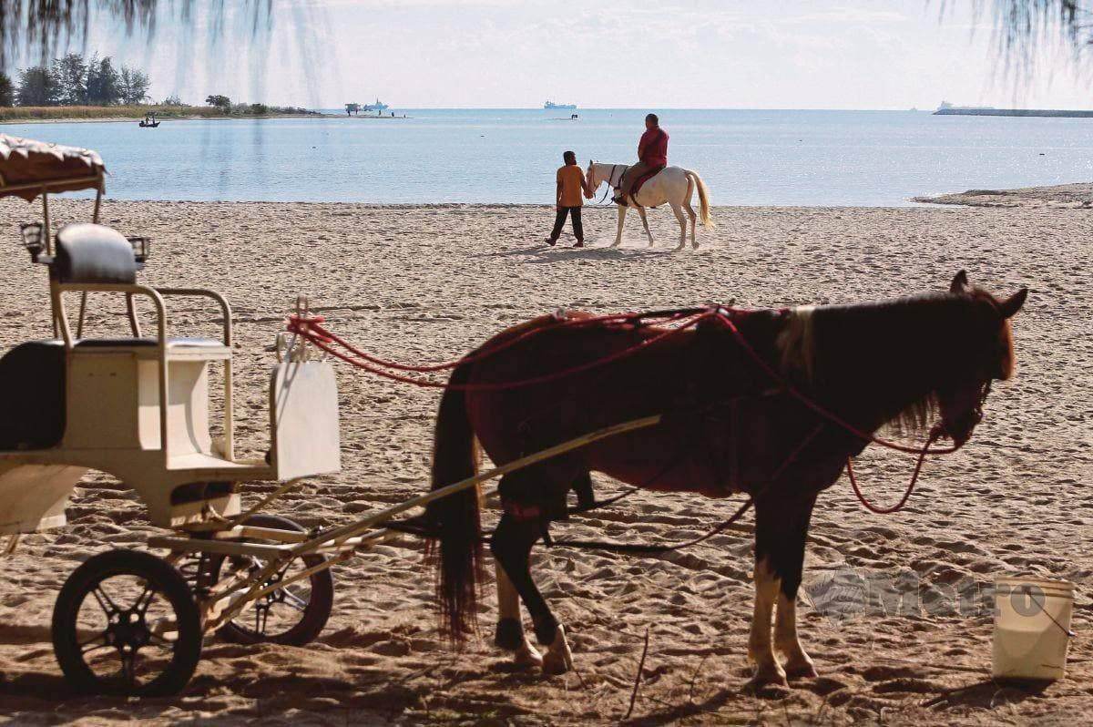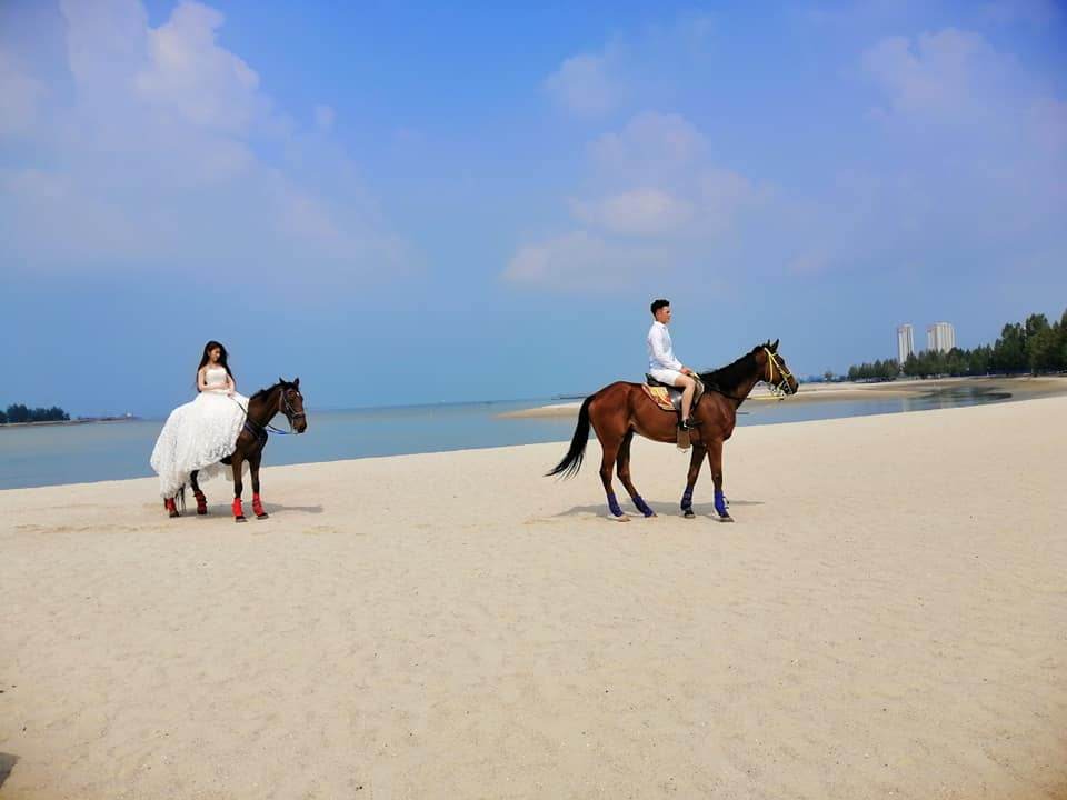 Malah ada juga pasangan pengantin yang mahu merakam kenangan indah dengan kuda. Ini antara aktiviti kebiasaanya dilakukan pengunjung di pantai ini.
