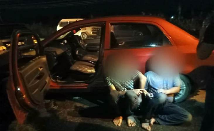 Kedua-dua suspek itu ditahan pada jam 3.15 petang semasa berada di dalam sebuah kereta jenis Perodua Kancil.