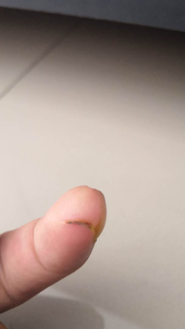 Mujur dia sempat untuk menarik benang tersebut dari menyebabkan kecedaraan yang lebih parah. Disebabkan itu jarinya turut terbelah.