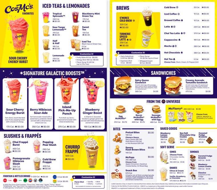 TERKINIRantaian makanan snek terkemuka dunia, McDonald's akan melancarkan restoran jenis baharu, CosMc's, kedai gaya retro dengan yang memfokuskan hidangan dan minuman yang boleh disesuaikan untuk menandingi rangkaian seperti Starbucks.