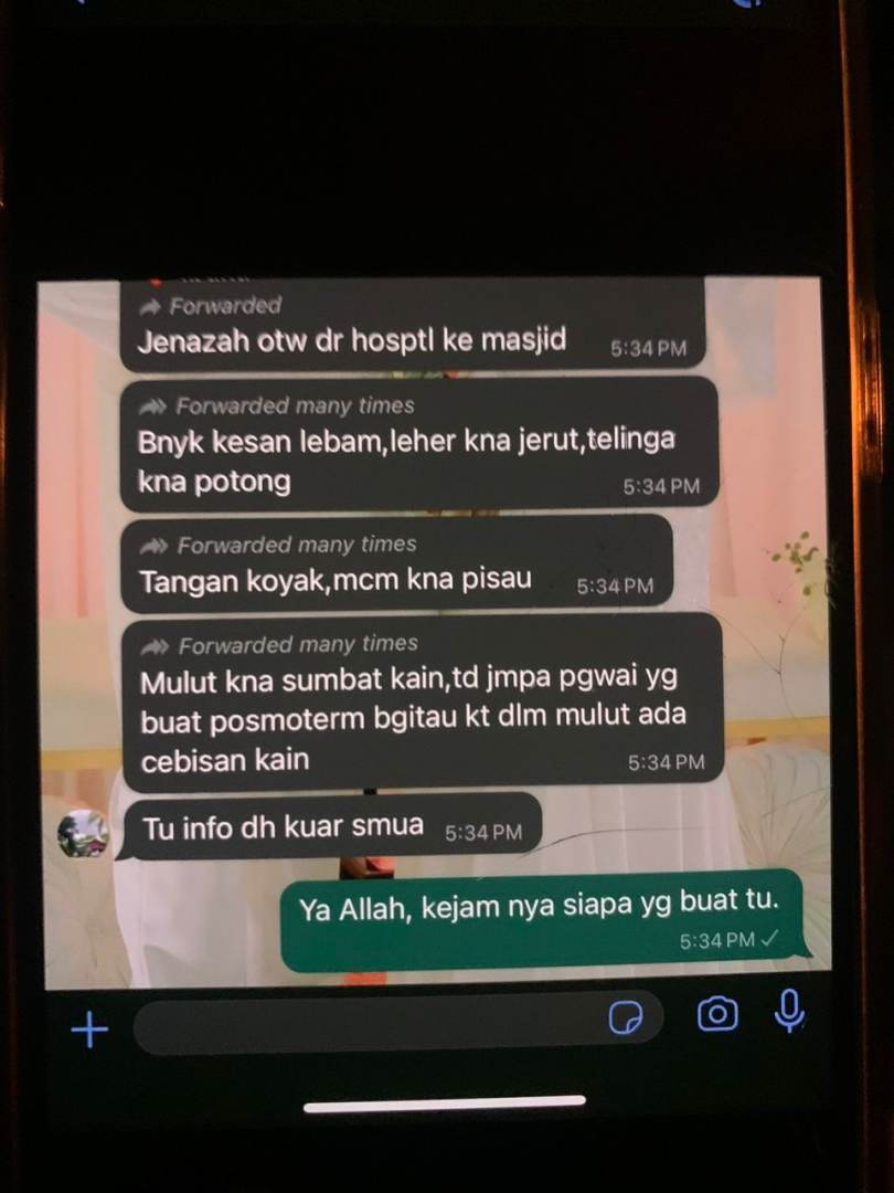 Dalam pada itu, sebuah tangkap layar telah tersebar di media sosial yang menunjukkan perbualan tentang hasil bedah siasat Zayn.