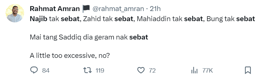 Hal tersebut menimbulkan persoalan di kalangan netizen apabila ramai yang membandingkan hukuman Syed Saddiq dengan bekas Perdana Menteri Malaysia, Datuk Seri Najib Tun Razak di media sosial X. Najib juga berdepan dengan kesalahan yang sama tetapi hanya dihukum penjara selama 12 tahun dan denda RM210 juta tanpa sebatan.