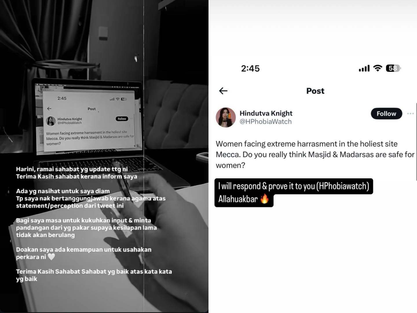 Video tersebut dimuat oleh seorang pengguna X dipercayai didakwa di India dengan kapsyen menuduh wanita Islam tidak selamat ketika berada di Tanah Suci Mekah.