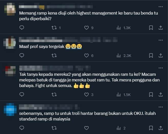 Rata-rata warganet melihat laluan tersebut tidak sesuai dan tidak mesra pengguna terutamanya buat golongan OKU.