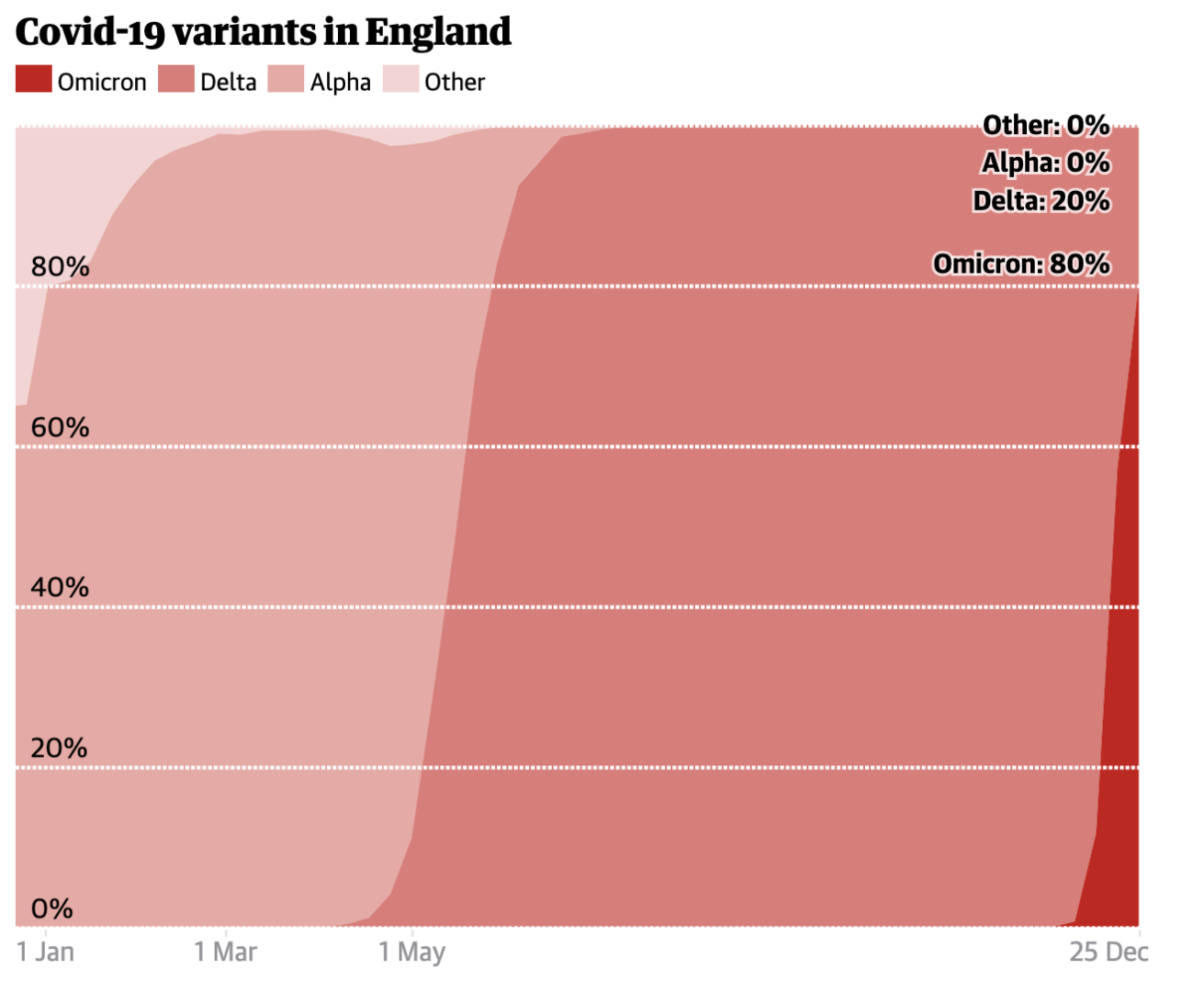 Menurut statistik, penularan varian Omicron di United Kingdom telah mencapai 78% dimana ia penularan tertinggi selepas varian Delta yang hanya menular sebanyak 22% sahaja. [Sumber]
