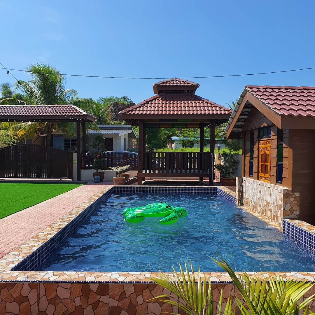 Antara chalet yang ada private pool di Ipoh untuk keluarga yang ramai betul betul depan tempat menginap. Boleh juga nak buat makan makan BBQ sebab disediakan kawasan lapang green carpet, payung dan tempat panggang untuk memudahkan customer yang bercadang nak bercuti beramai ramai ke Ipoh.