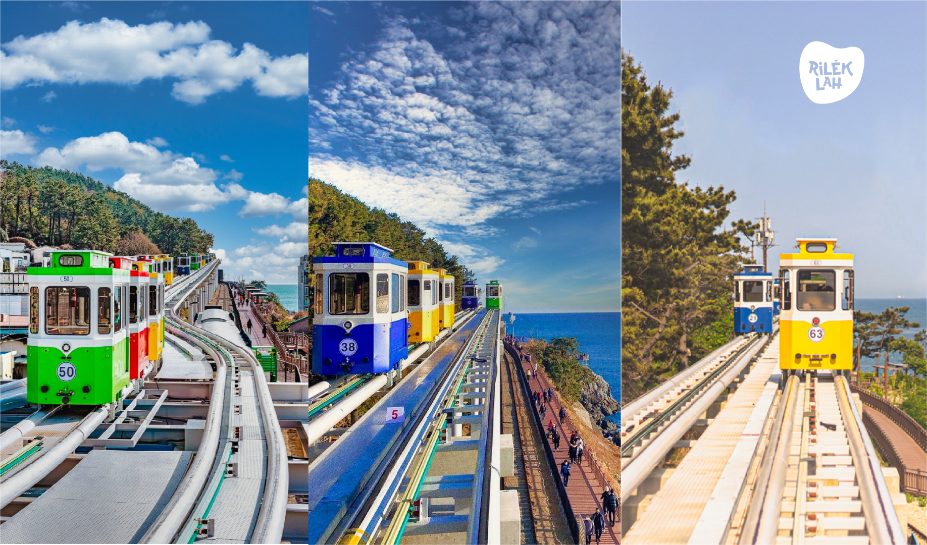 Haendae Blueline Park, lokasi sempurna untuk korang layan keindahan landskap semulajadi di Busan. Korang boleh pilih sama ada naik Sky Capsule atau pun tren mini yang comel! Pemandangan di sepanjang perjalanan bermula dari Haeundae Mipo dan berakhir di Songjeong memang memukau! Memang rugi kalau korang tak cuba naik Sky Capsule atau mini tren!