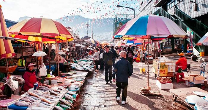 Apalah maknanya kalau bercuti ke Busan tanpa menikmati hidangan laut segar di Jagalchi Market. Jagalchi ini merupakan pasar ikan terbesar di Korea dan semua makanan lautnya adalah segar-segar belaka kerana dibawa terus dari nelayan di pelabuhan ke pasar tersebut.