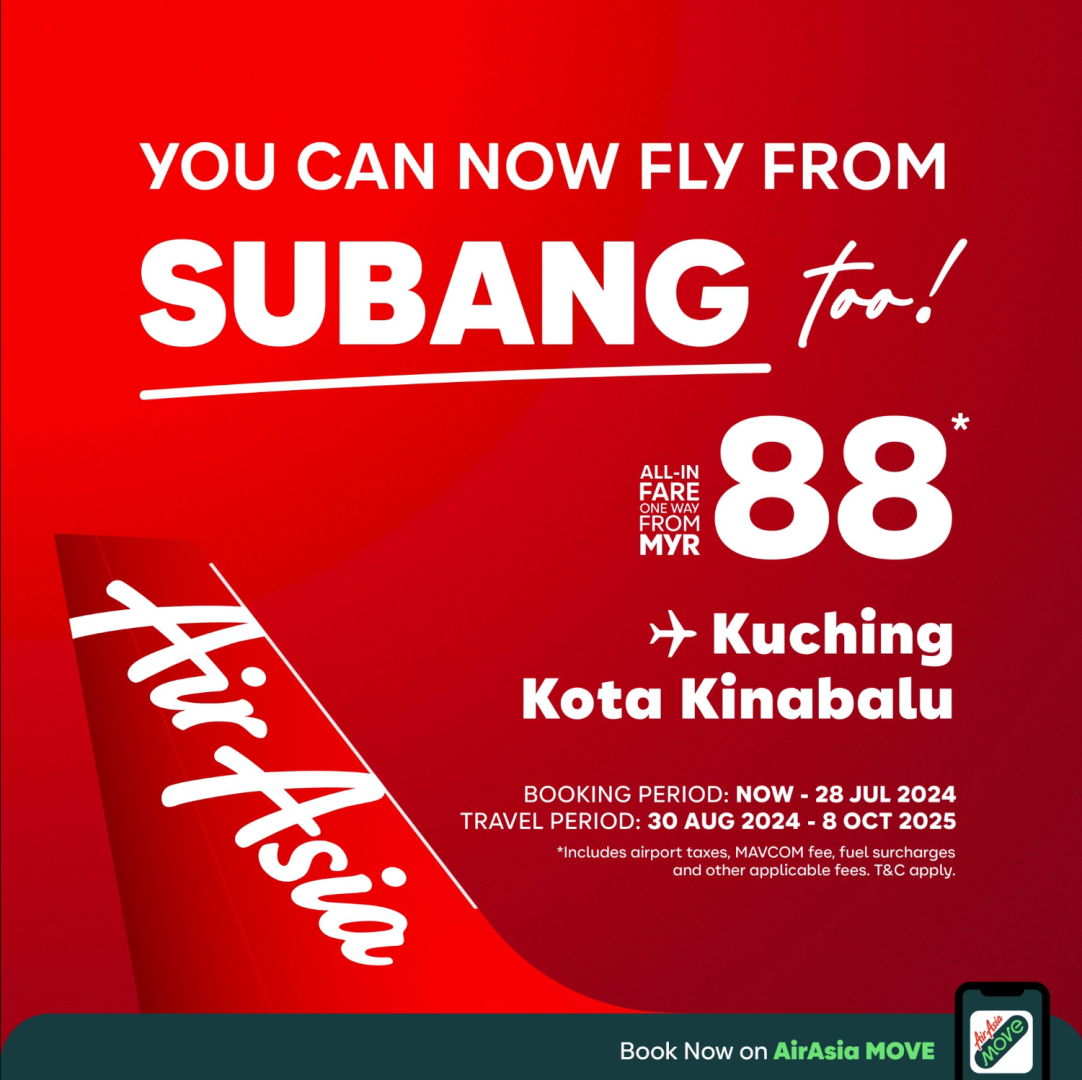 AirAsia Kembali Terbang Dari Subang Ke Kuching & Kota Kinabalu Bermula RM88!