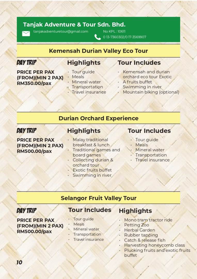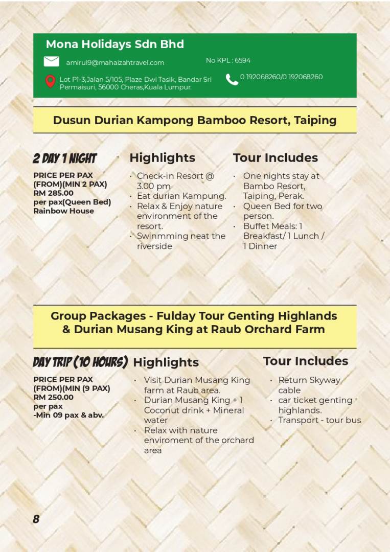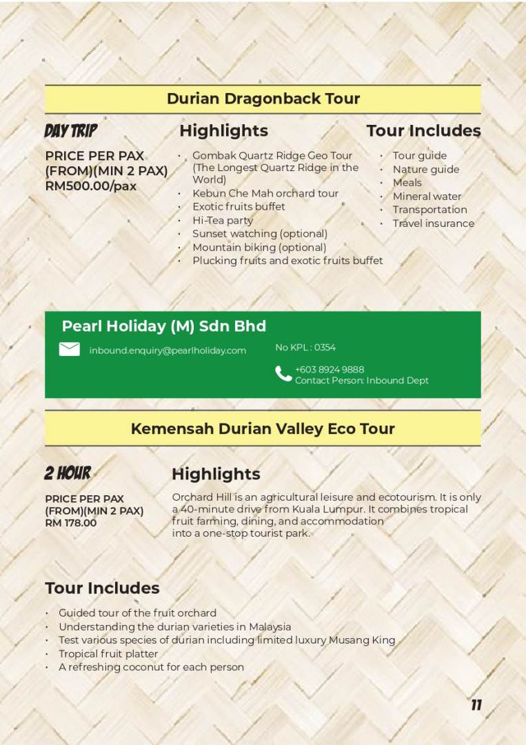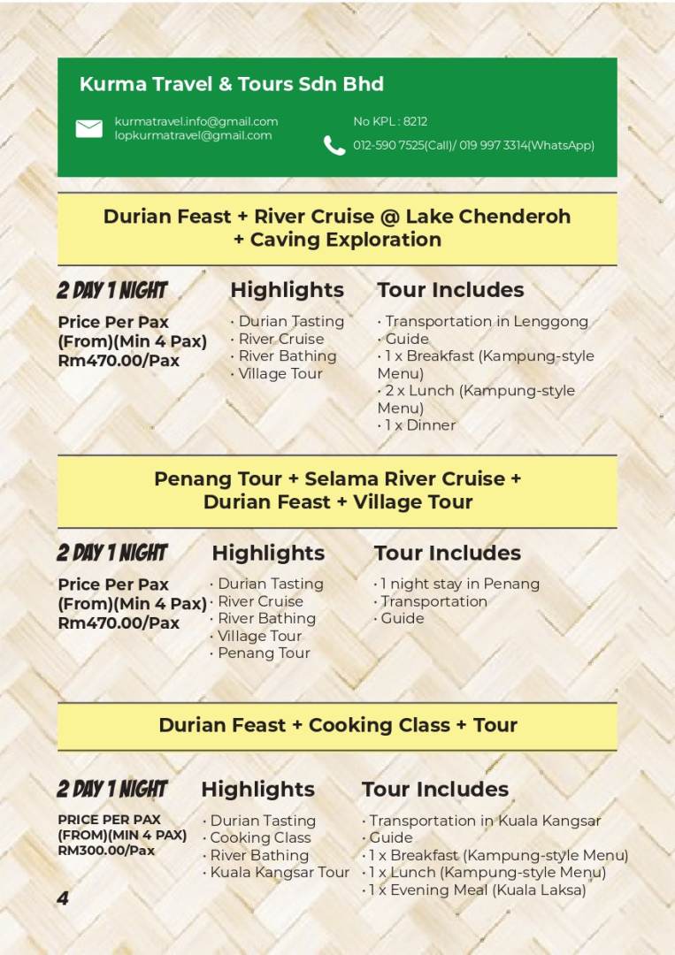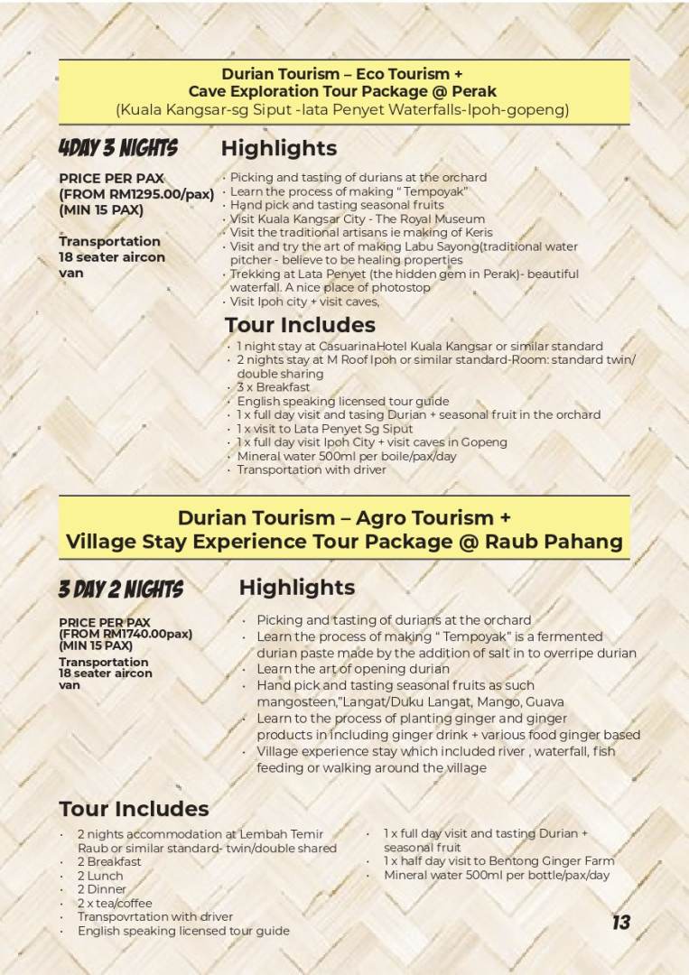 SENARAI PAKEJ DURIAN TOURISM 2023