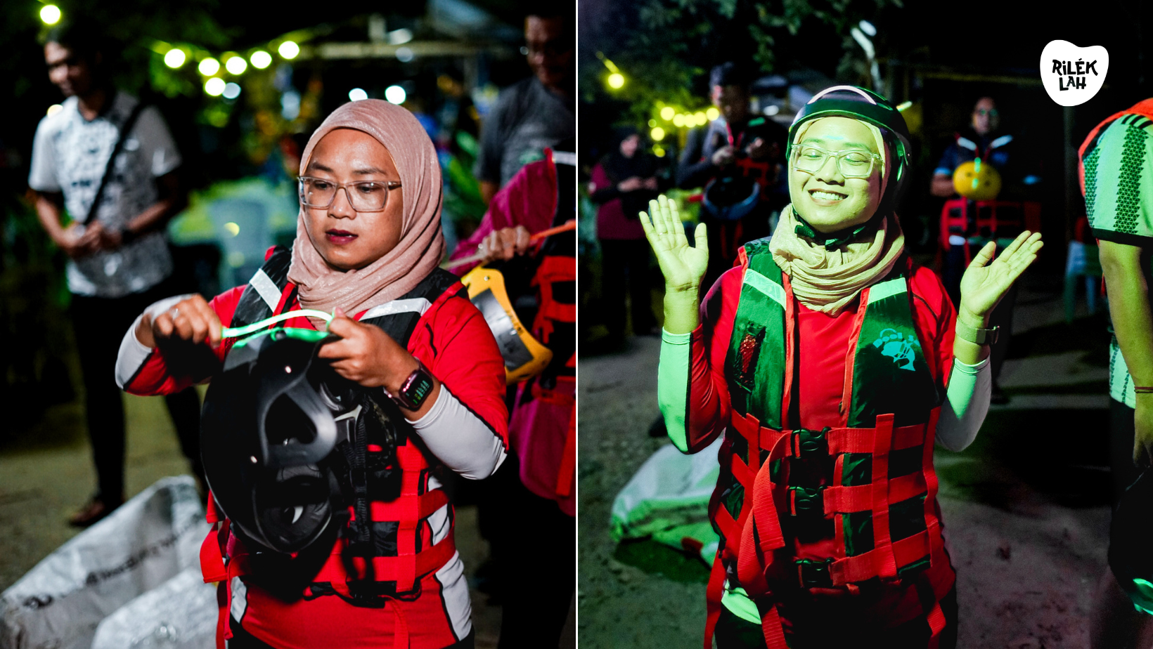 Sama seperti river tubing di siang hari, korang juga akan dibekalkan dengan jaket dan topi keselamatan serta pelampung.