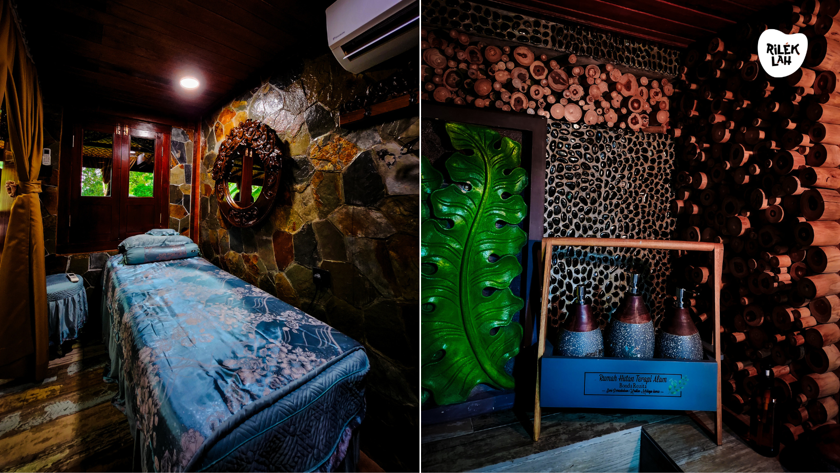Menariknya, jika mendapatkan rawatan urutan di sini tidak kiralah untuk mengubati penyakit, menghilangkan keletihan atau menambah seri aura wajah -- tetamu akan diurut secara eksklusif dan privasi di bilik-bilik kayu tepian sungai yang cukup menenangkan jiwa.