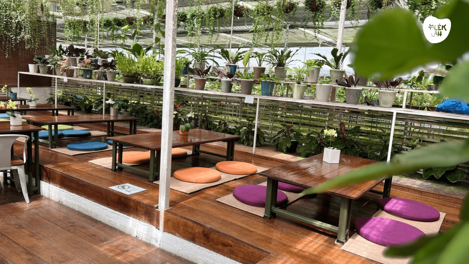 Suasana di dalam kafe ini sememangnya lain dari kafe hispter yang ada di Lembah Klang, kerana di sini walaupun dekorasi dalamannya begitu Instagrammable -- tetapi ia dipenuhi dengan hiasan bunga Orkid yang cantik-cantik belaka!