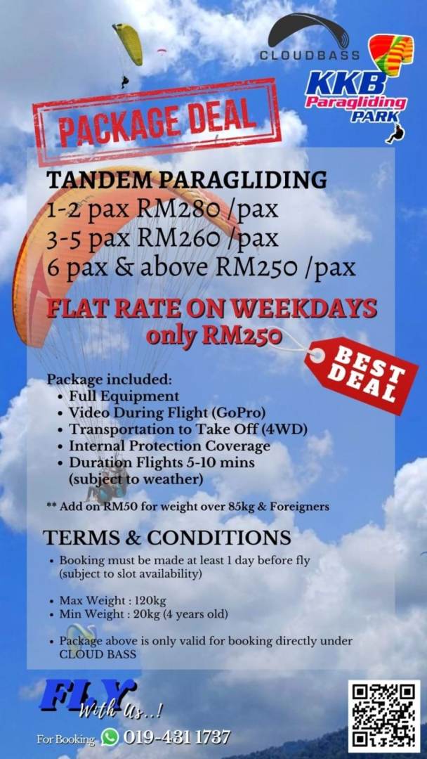 Gambar di bawah adalah harga dan segala maklumat yang korang perlukan sekiranya ingin mencuba aktiviti Paragliding KKB ini: