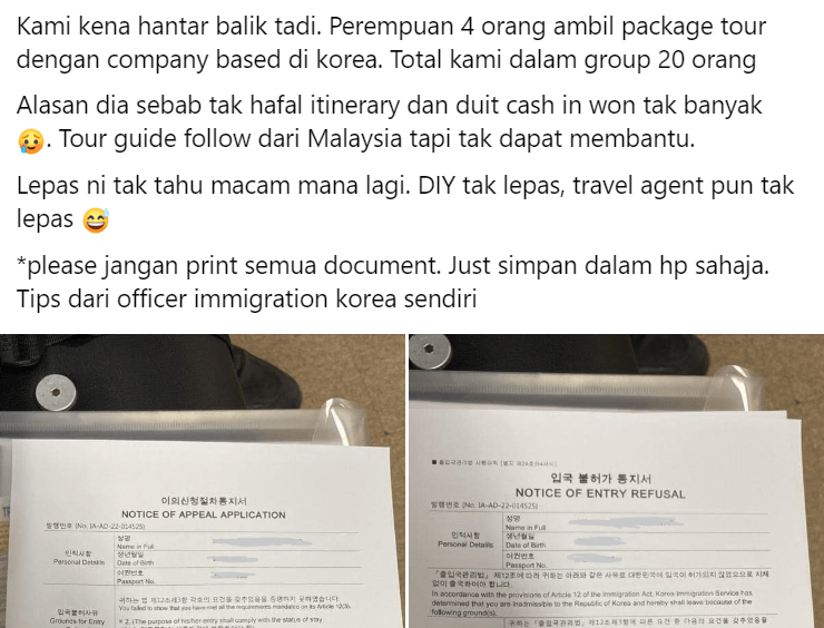 Susah nak masuk Korea sekarang. Pergi 3 orang, 2 orang kena balik tanpa alasan. pic.twitter.com/zrWOBhnyHC
