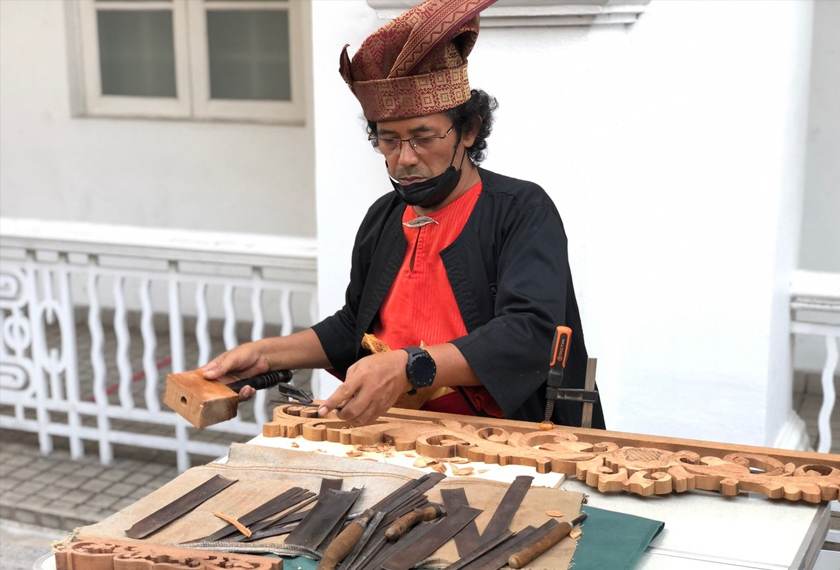 Bukan sahaja meriah dengan barisan peniaga dan produk jualan -- lorong ini turut mengetengahkan pameran kraftangan termasuk peralatan muzik pelbagai kaum.