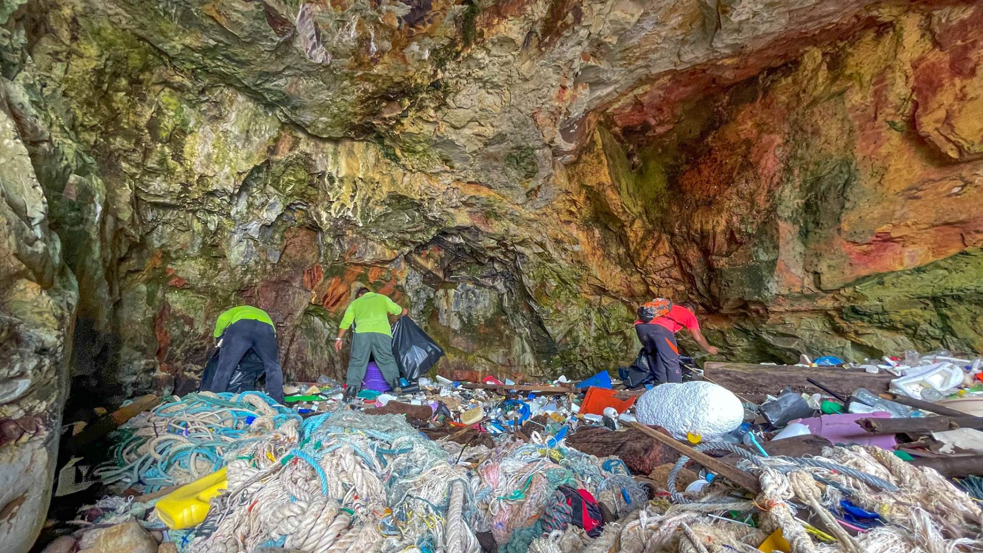Timbunan bahan buangan yang tidak terbiodegradasi seperti botol air, beg plastik, peralatan menangkap ikan terbiar, pembungkus makanan, selipar dan lain-lain memenuhi ruang gua.