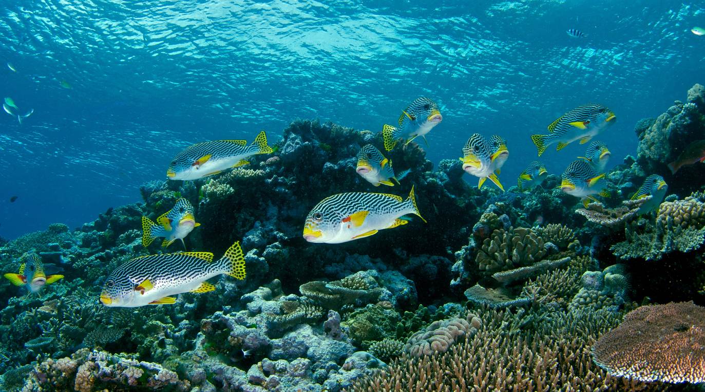 Selain terumbu karang yang indah di dasar lautan, anda juga boleh berjumpa dengan hidupan marin yang menarik seperti humphead parrotfish, giant stingray, leopard sharks, bat fishes, whale sharks dan schooling jacks. Kalau bernasib baik, Whale Shark juga boleh kelihatan di sesetengah tempat di sini daripada bulan Ogos-Oktober pada setiap tahun.