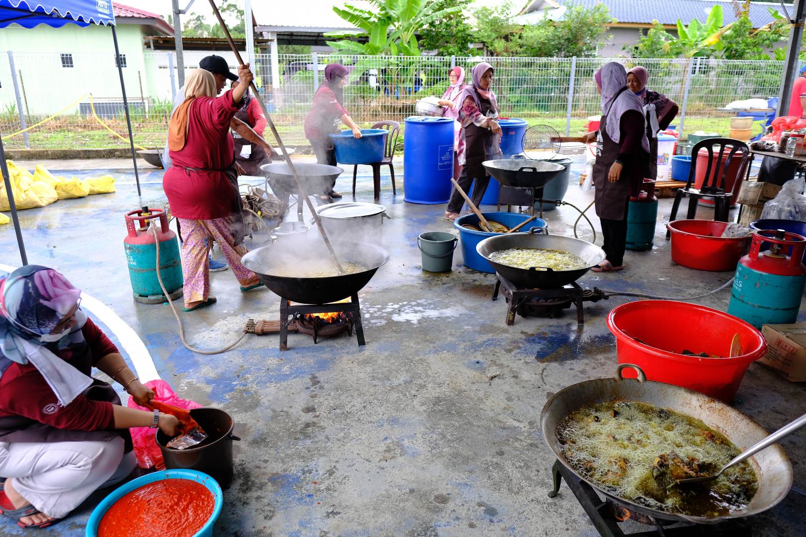 Bermula dari menyediakan bahan-bahan untuk kenduri sehinggalah proses penyembelihan kerbau serta penyediaan majlis perkahwinan semuanya dibuat sendiri oleh penduduk kampung.