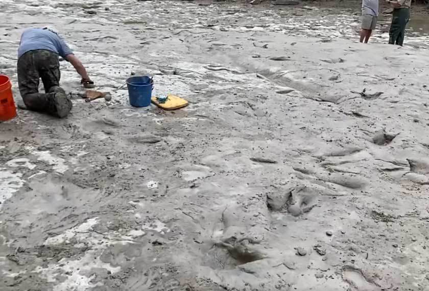 Sebanyak 60 kesan tapak kaki dikesan hasil daripada pengeringan sungai berkenaan.