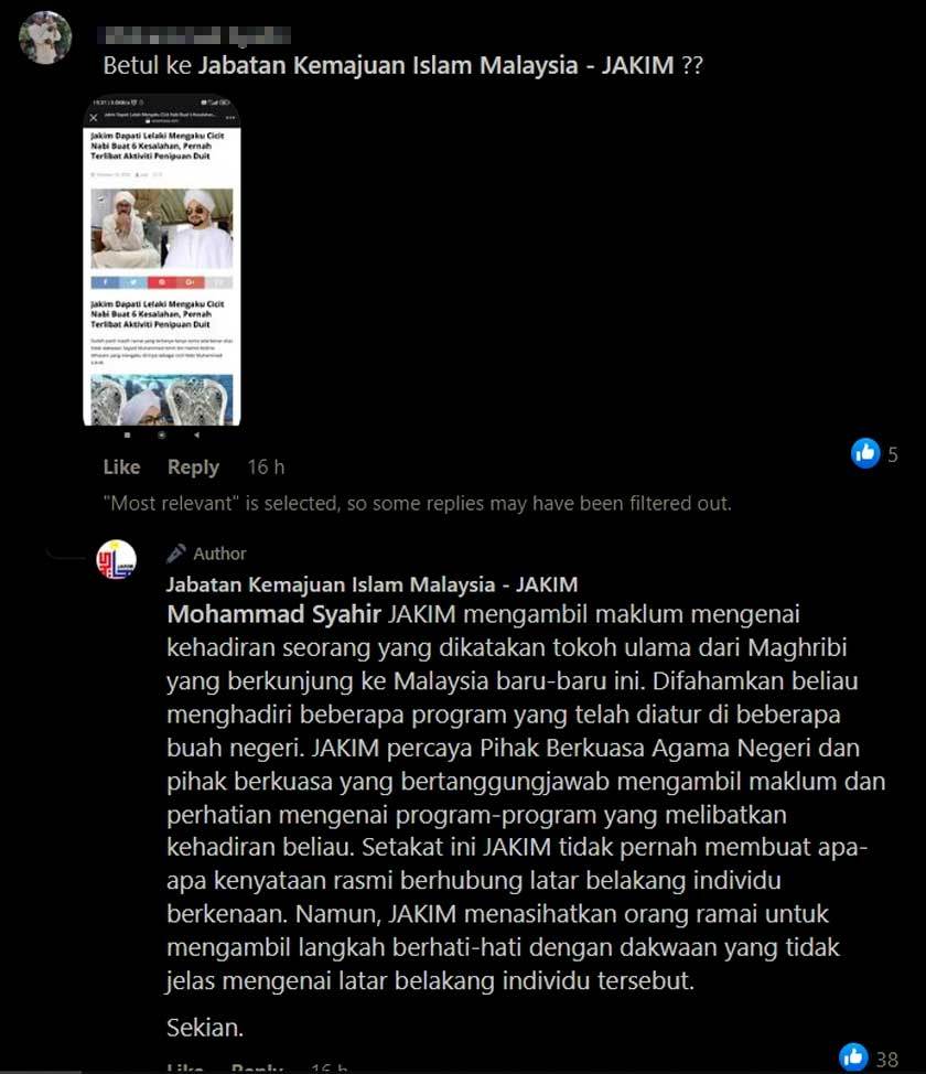“Setakat ini Jakim tidak pernah membuat apa-apa kenyataan rasmi berhubung latar belakang individu berkenaan.