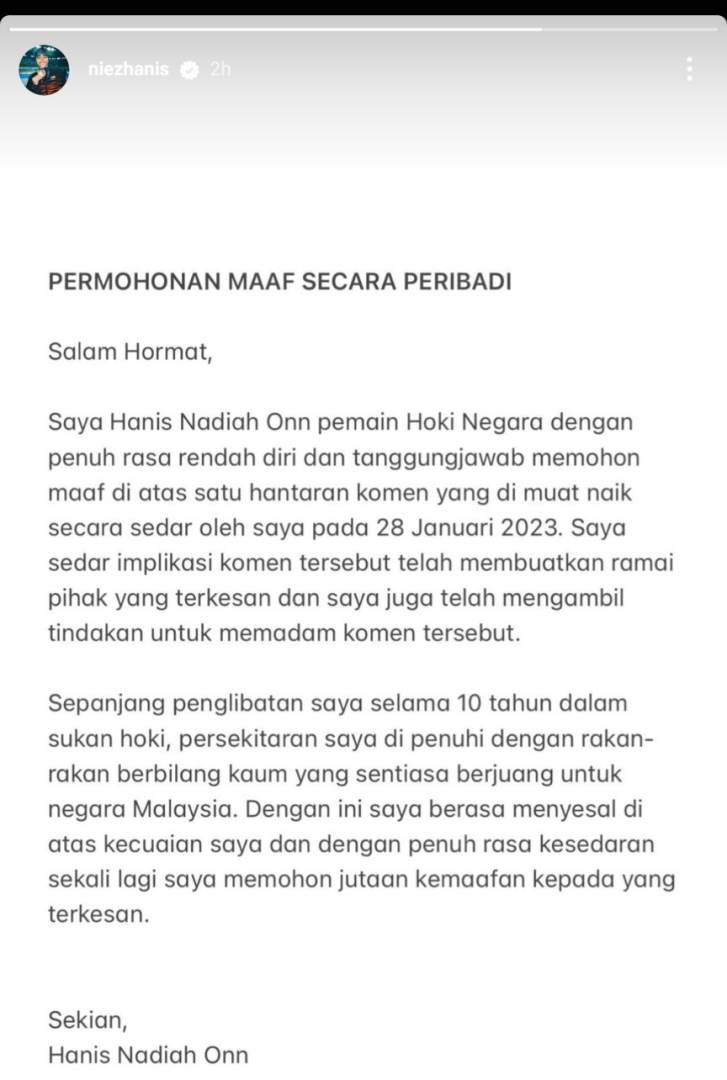 Tidak cukup dengan itu, tindakan seorang atlet hoki wanita kebangsaan meninggalkan komen berbaur rasis turut dikecam netizen.