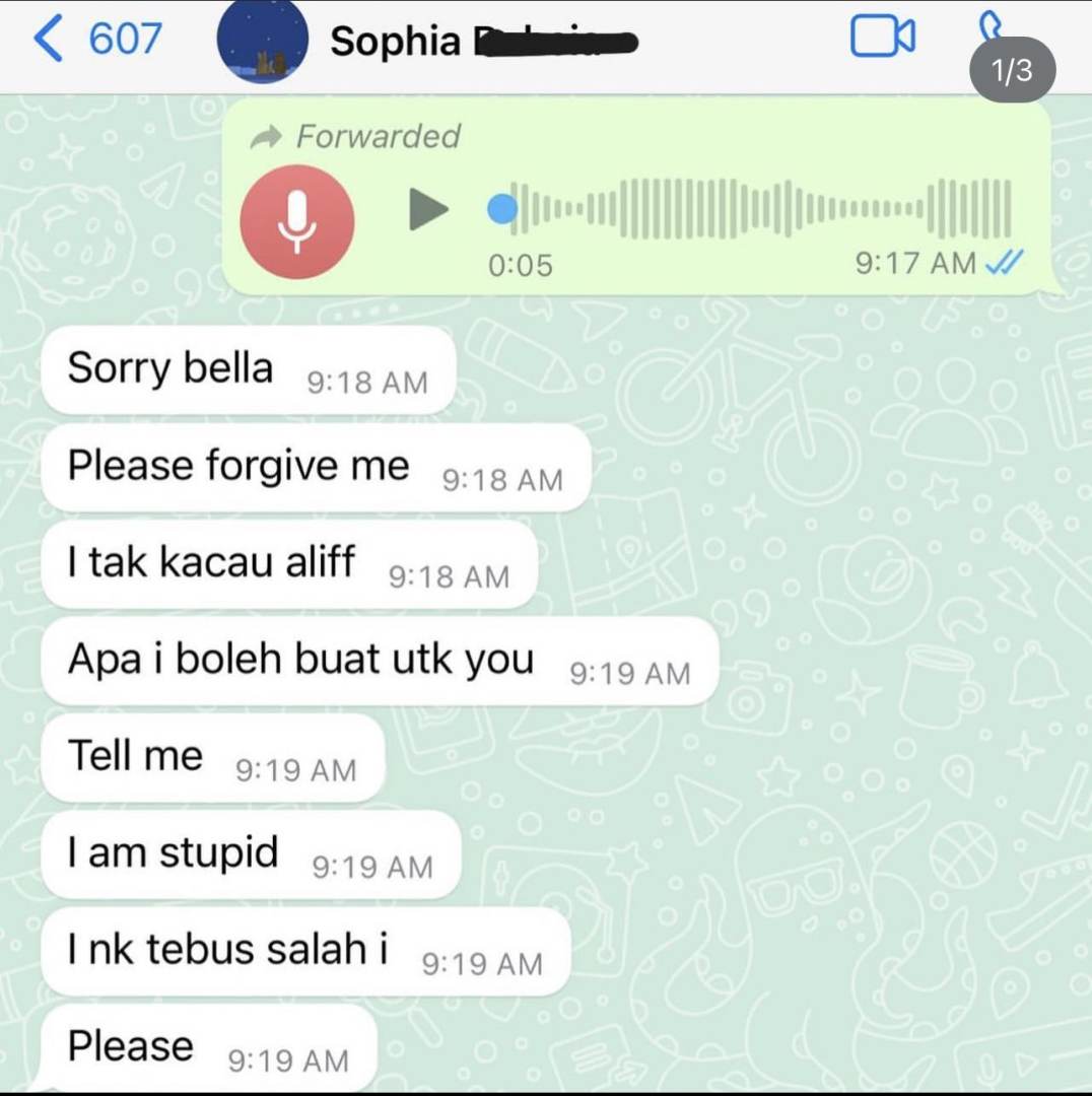 Bella Tunjuk Bukti, Sophia AlBarakbah Mengaku Silap Cuba Jadi Orang Ketiga!