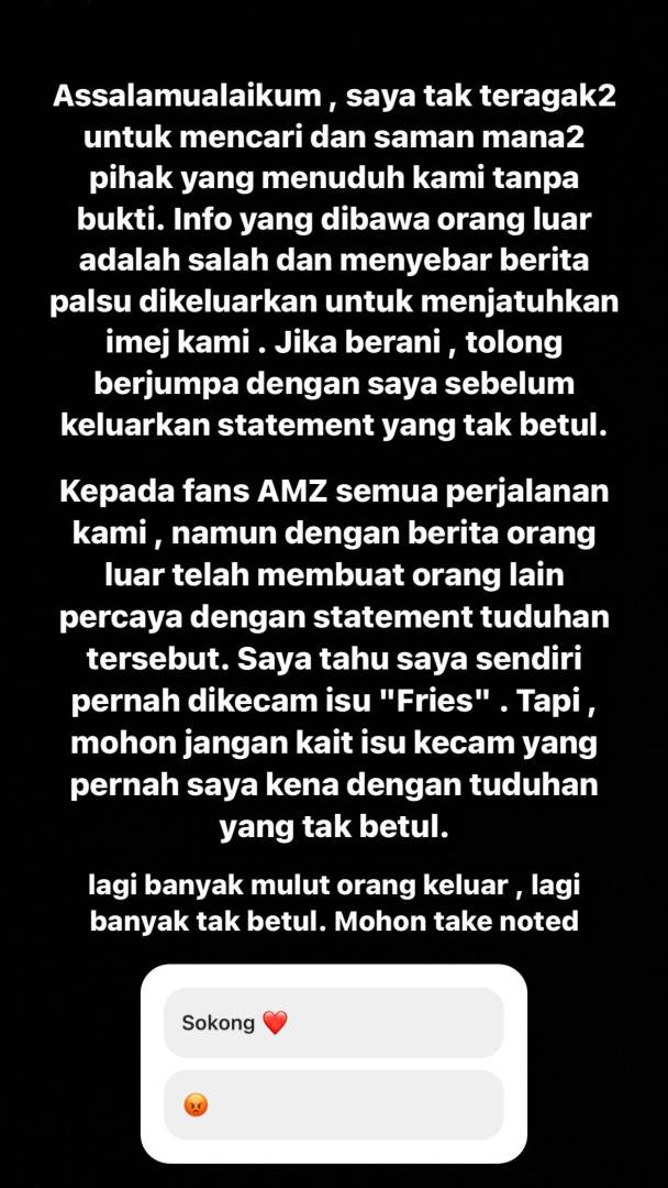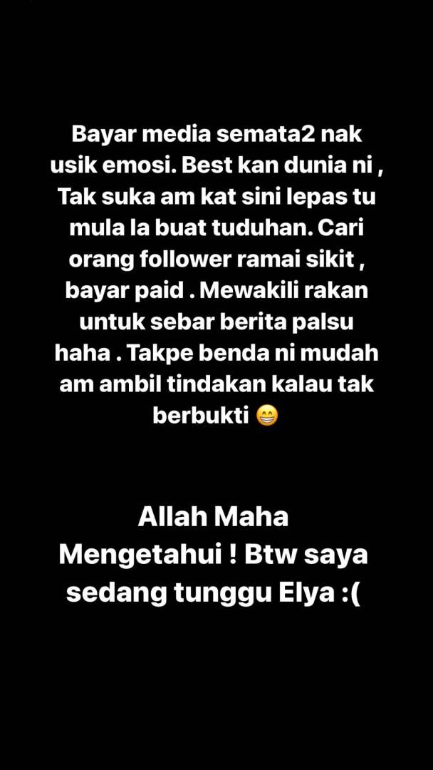 "Takpe, benda ini mudah Am nak ambil tindakan kalau tak berbukti. Allah Maha Mengetahui," katanya.