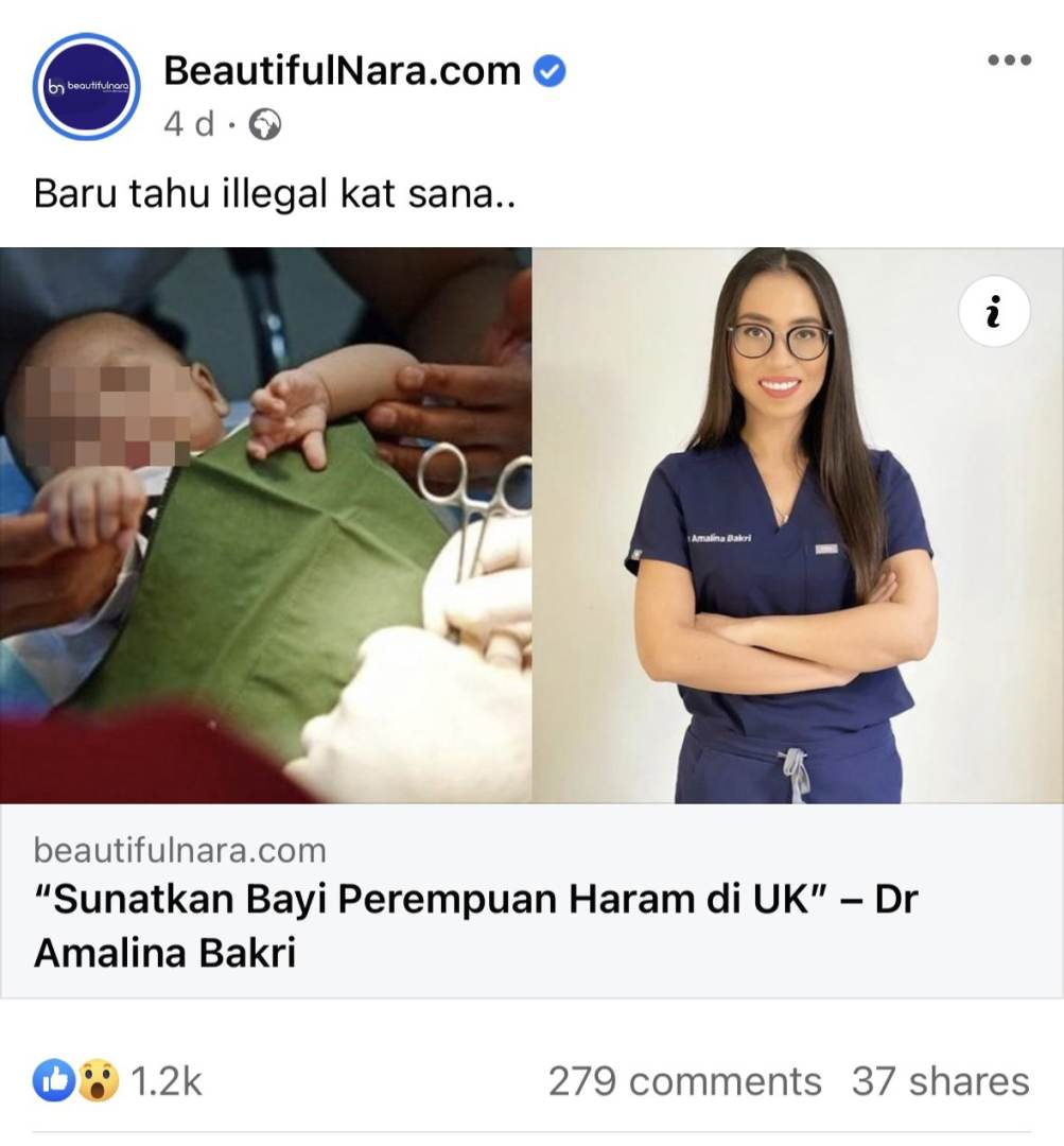 TERKINIBeberapa hari yang lalu, perkongsian doktor pakar bedah, Dr. Amalina Che Bakri tentang berkhitan untuk anak perempuan adalah dilarang di United Kingdom membuat netizen terkejut dan mendatangkan pelbagai reaksi.