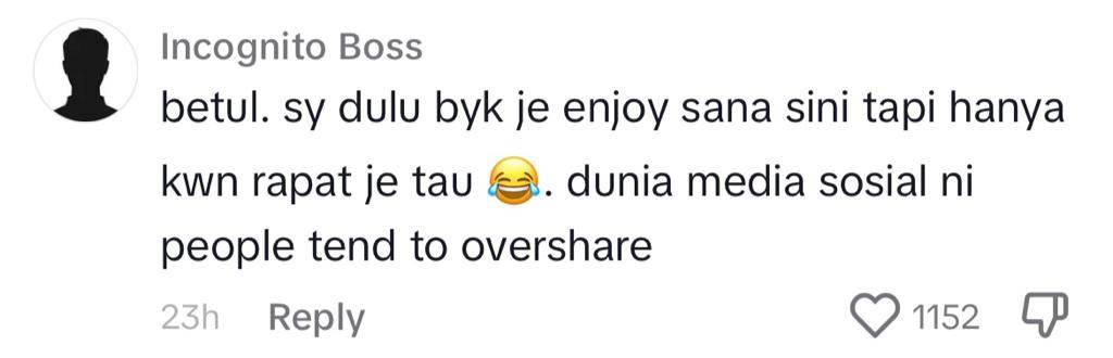 "Kedua, jadi smart macam daddy. Kalau daddy nak pergi parti ke, berjimba ke, private party ke, daddy tak share di media sosial. So I'm smart you know and you pun also do the same lah" kata Azhar.
