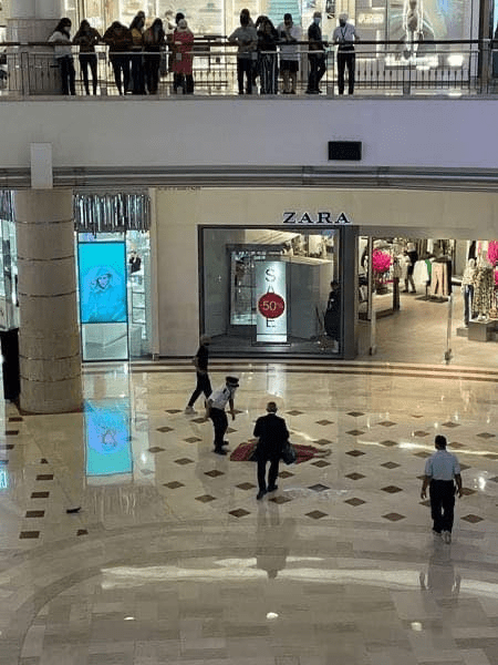 Terdahulu, tular di laman sosial Twitter berhubung kejadian itu apabila ada saksi mendakwa mangsa terjatuh dari tingkat empat pusat beli belah berkenaan.