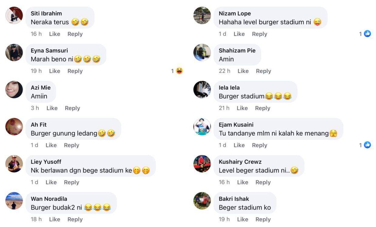 "Ingatkan burger stadium bola," komen netizen.