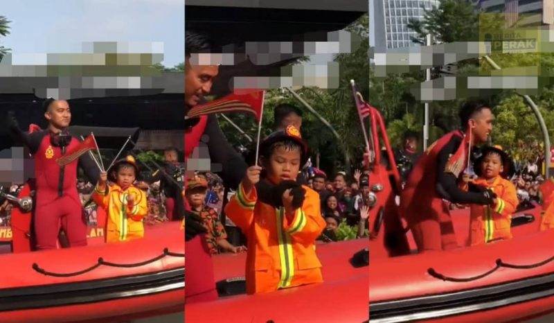 Aksi kanak-kanak itu disedari anggota bomba berdiri di sebelahnya yang bertindak pantas menutup tangan dan menegurnya.