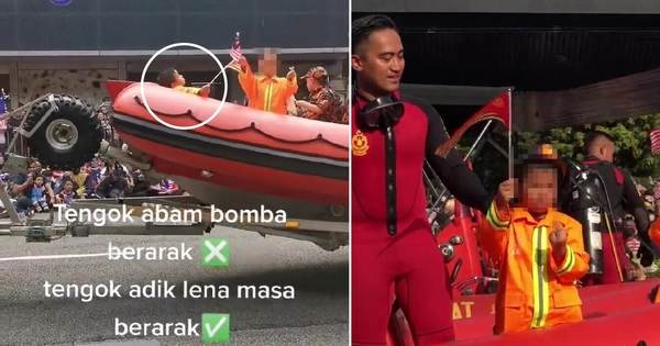 "Dia sebagai peminat bomba memang excited (teruja) sangat dapat terlibat dalam perbarisan kemerdekaan walaupun bangun pukul 5 pagi. Dari semalam (kelmarin) excited sangat dapat pakai baju bomba.