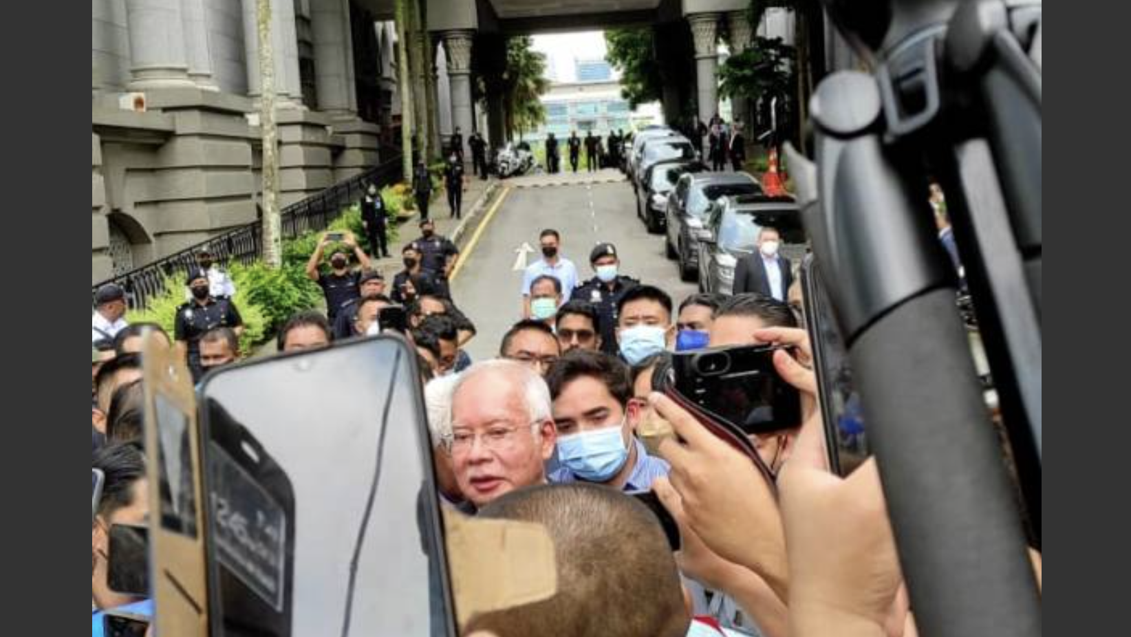 Lebih dua jam suasana hening di luar Istana Kehakiman di Putrajaya, keadaan kembali gamat kira-kira jam 3.10 petang tadi apabila bekas Perdana Menteri, Datuk Seri Najib Tun Razak dilihat keluar bertemu penyokongnya.