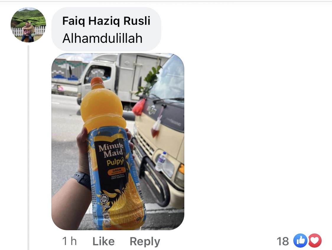 Tak lama selepas itu, pemandu tersebut berkongsikan beberapa keping gambar menyatakan sesorang telah membelikannya air dan juga makanan. Wah hebat rakyat Malaysia, terharu dibuatnya.
