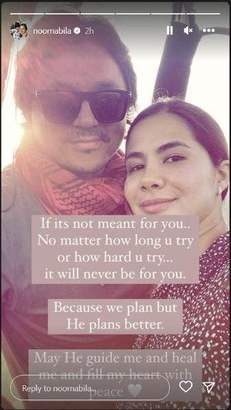 Dalam perkongsian yang turut memaparkan foto bersama bekas suaminya itu, Noor Nabila turut menyatakan manusia mengatur, namun, Allah mempunyai perancangan yang lebih baik.