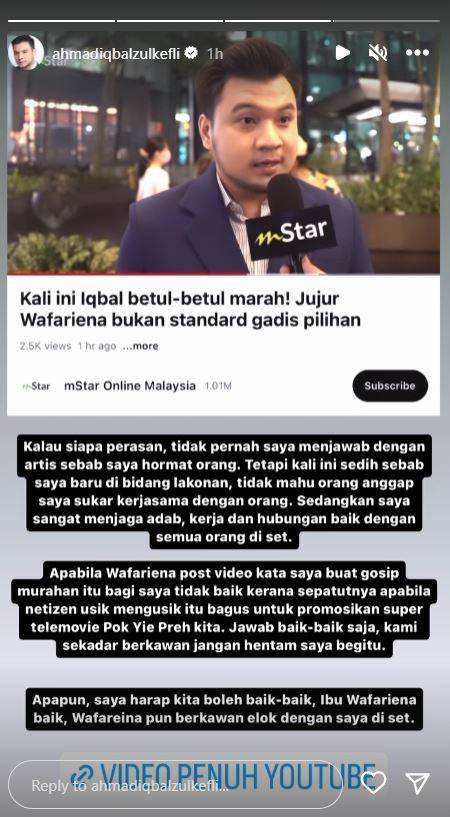 TERKINIIqbal Zulkefli nyata kecewa dan terkilan dengan kenyataan aktres Wafariena.
