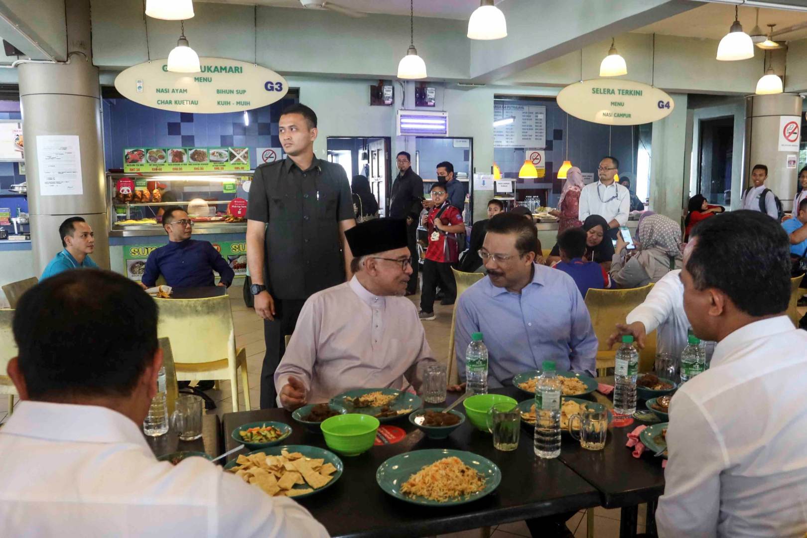 12.20 tengah hari: Perdana Menteri dilihat sempat meluangkan masa untuk singgah makan tengah hari di Medan Selera Presint 8, Putrajaya.