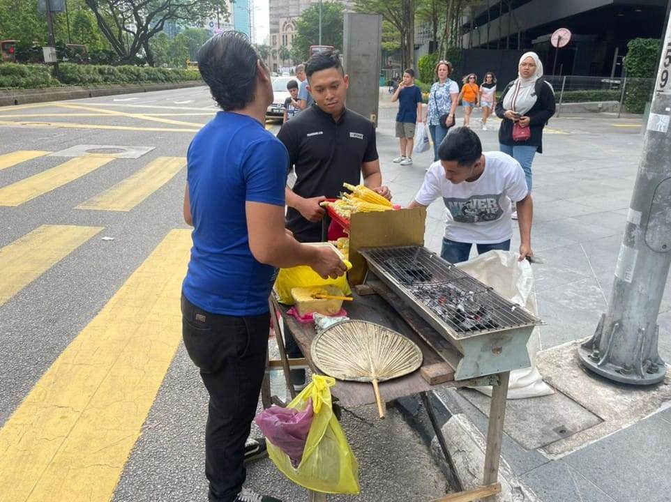 "Siap Bakar Jagung Pakai Kipas & Arang" - Warga Asing Selamba Jual Jagung Bakar Depan KLCC