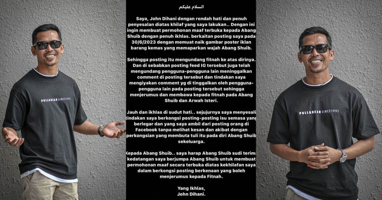 "Pada 4 Julai, Johan Dihani ada membuat permohonan maaf dalam IGs, namun bertindak memadam semula permohonan berkenaan.
