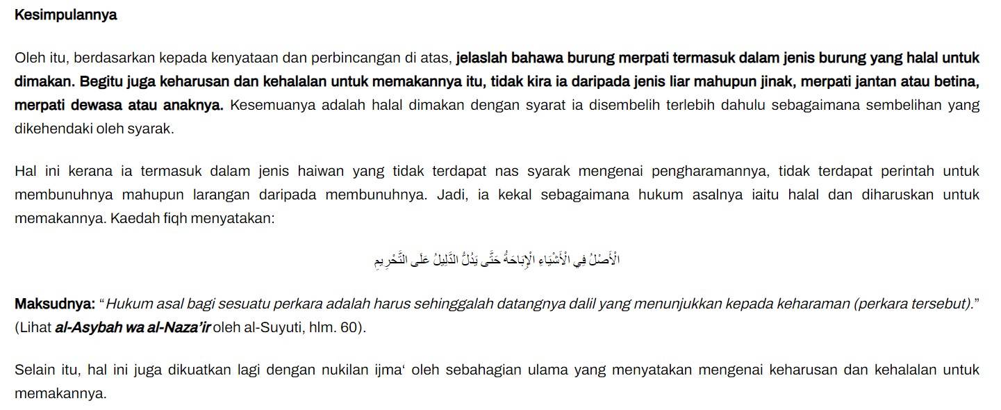 Menurut portal Maktabah Al-Bakri, burung merpati termasuk dalam jenis burung yang halal untuk dimakan.